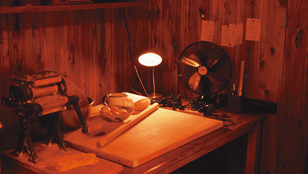 In a shed he built in the backyard of his home, Ando began research into "Ramen that can be quickly prepared and eaten at home with only hot water." He cobbled together all the tools and materials used for the project himself and conducted non-stop development alone for an entire year, without taking a single day of rest and sleeping only four hours a night on average. Each day was a desperate struggle.